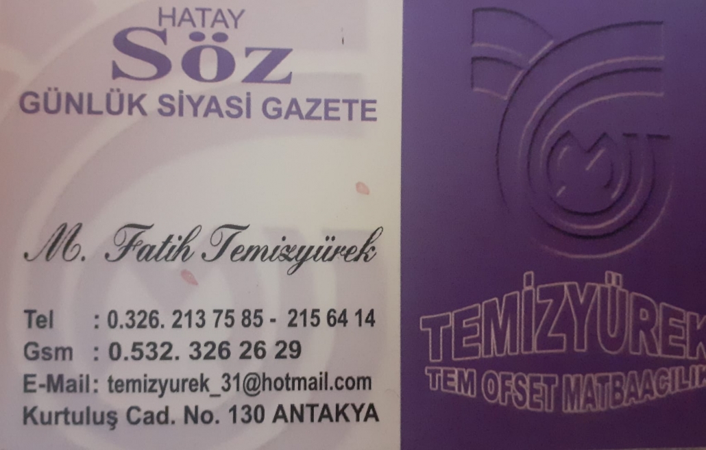 | Firma Ünvanı | HATAY ANTAKYA TEM OFSET MATBAACILIK |
